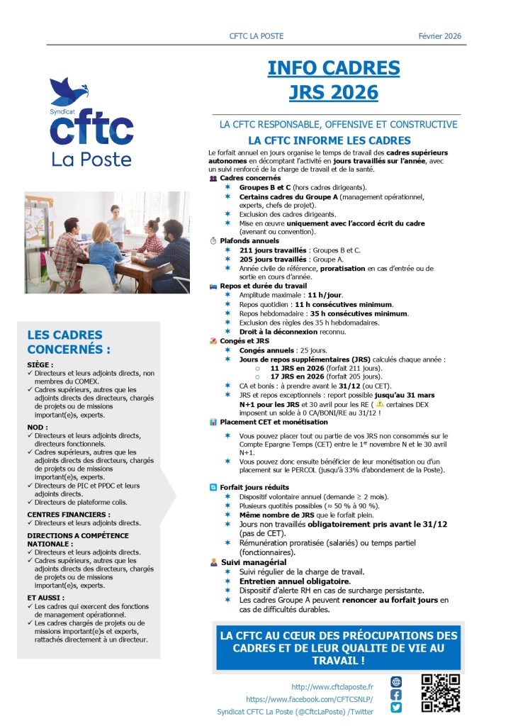 Jours de repos supplémentaires (JRS) calculés chaque année :